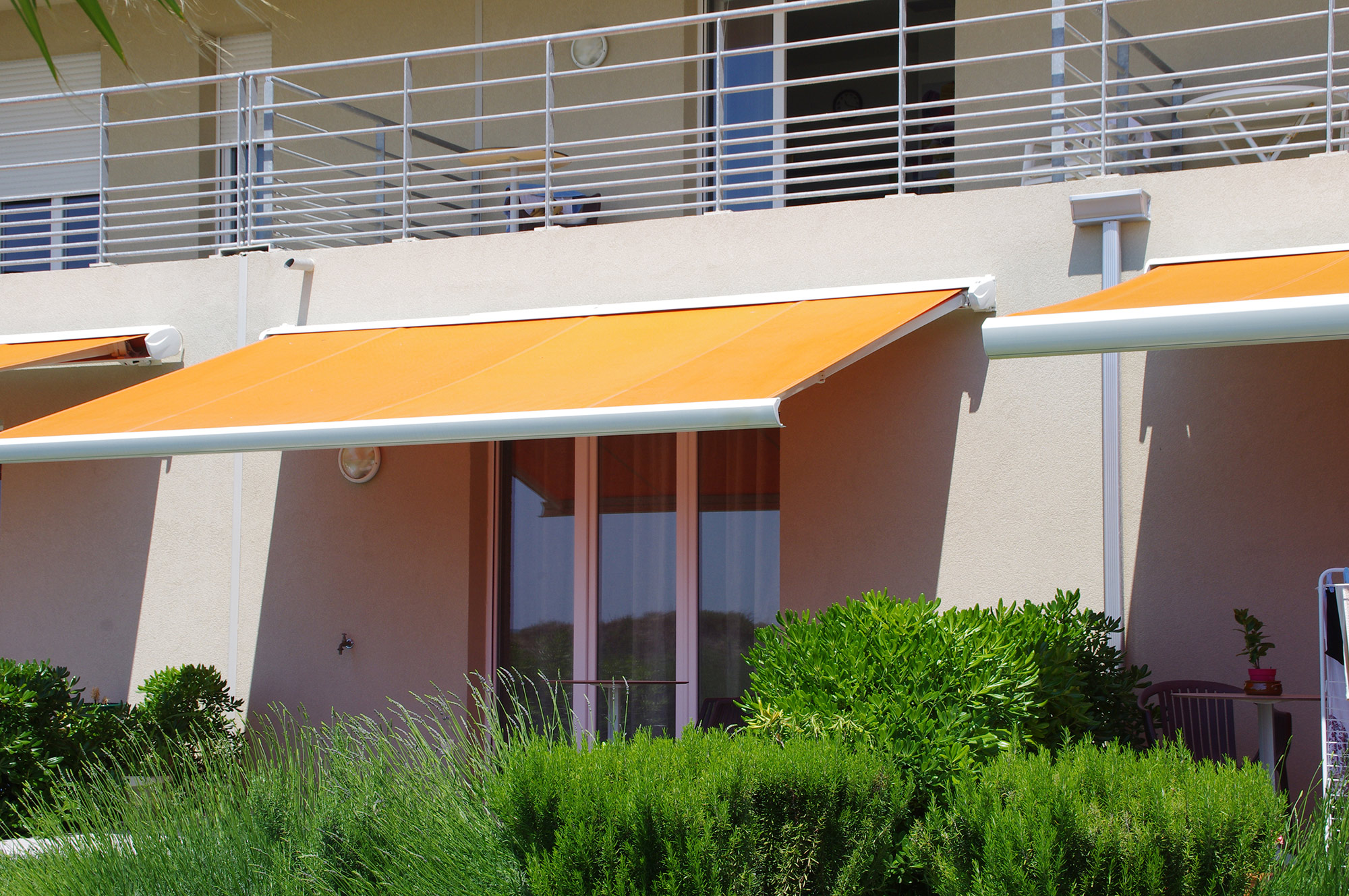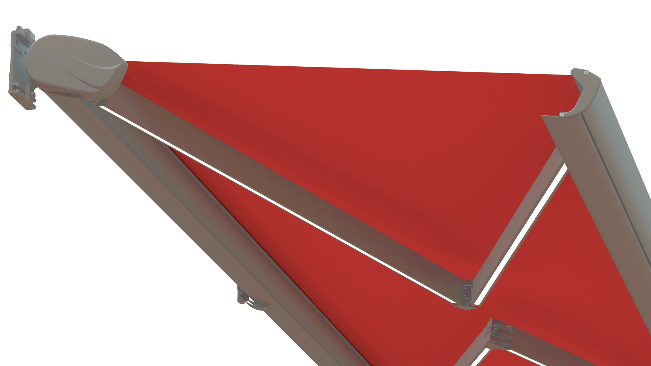 Pour les armatures et fixations, votre client peut choisir parmi 90 couleurs standard ou toute autre couleur â la demande. Et même d'avoir un store bi-color : par ex. avec des bras de la même couleur que la toile.